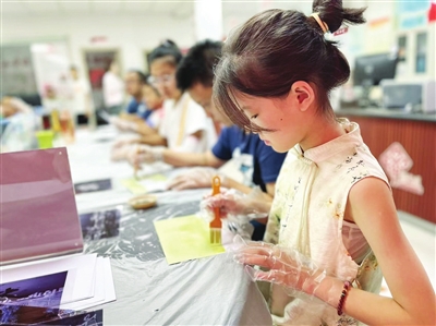 為傳承弘揚中華優秀傳統文化,豐富轄區青少年暑假生活,近日,柳巷街道鐵匠巷社區開展“藍曬拓印 布...