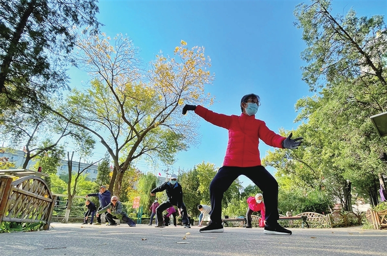 10月4日,省城新建路一處游園內,晨練的老人們已穿上冬衣開啟一天的“慢”生活。重陽節,陪伴才是對他們最好的關心,記得常回家看看。