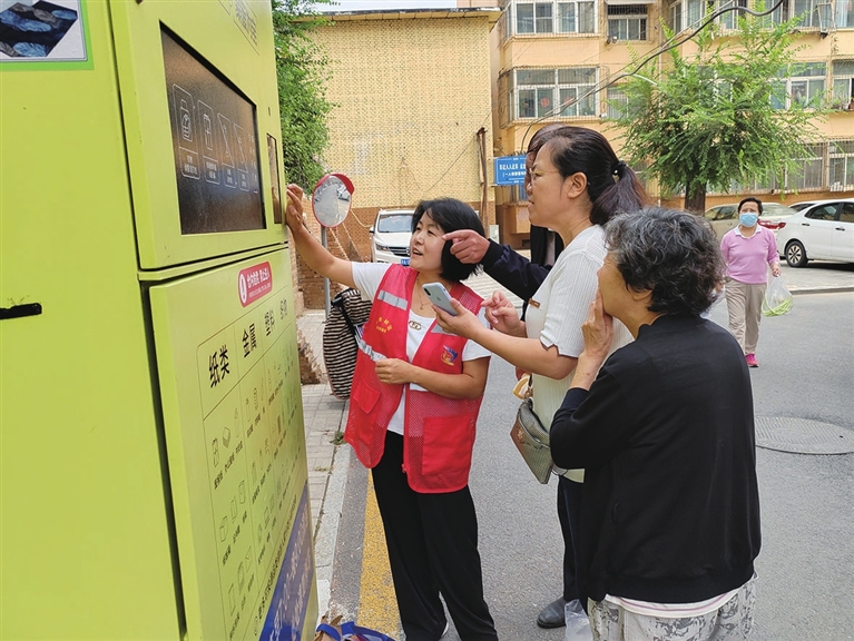 內容提要:居民王大娘拾掇了家里的廢紙板、飲料瓶,投進小區新設置的智能垃圾分類回收柜里