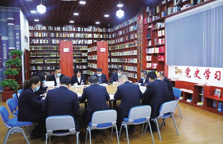 職工們?cè)跁輧?nèi)學(xué)習(xí)。