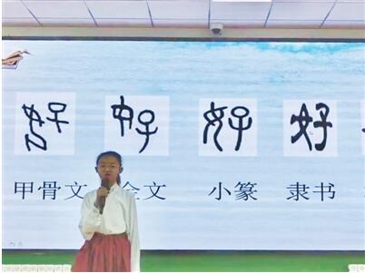 活動(dòng)中,學(xué)生們以PPT和視頻的形式,聲情并茂地分享漢字謎語、識(shí)記口訣,講述漢字演變過程和相關(guān)的成語故事,激發(fā)大家對(duì)漢字緣起與演變、內(nèi)涵與外延、探究與學(xué)習(xí)的濃厚興趣。此次活動(dòng)為學(xué)生提供了解傳統(tǒng)文化、感受漢字之美的機(jī)會(huì),也給學(xué)生心中埋下勇于探索知識(shí)的種子。(見習(xí)記者 孫佳敏 通訊員 張麗俊 文/攝)