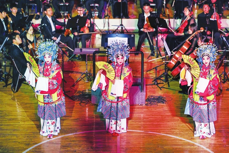 王明哲老師介紹說,音樂會是課堂的一種延伸,用現場演奏的方式,能拉近學生和音樂的距離。這些音樂作品多為中國作品,能更好起到弘揚民族精神、普及國粹文化的作用。在音樂會中加入“講解”,需要語文、歷史、政治等學科的教師提前“共同備課”,表演時,教師會從多學科角度為學生們講解樂曲的背景、意義等相關內容,然后再由樂團指揮帶著學生理解音樂。這種多角度賞析音樂的方式,也是一種音樂授課方式的新嘗試。