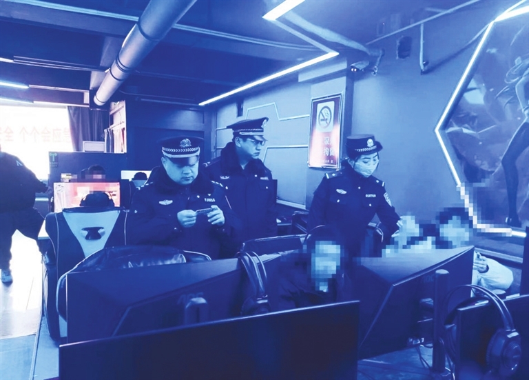 民警查驗上網(wǎng)人員身份信息。